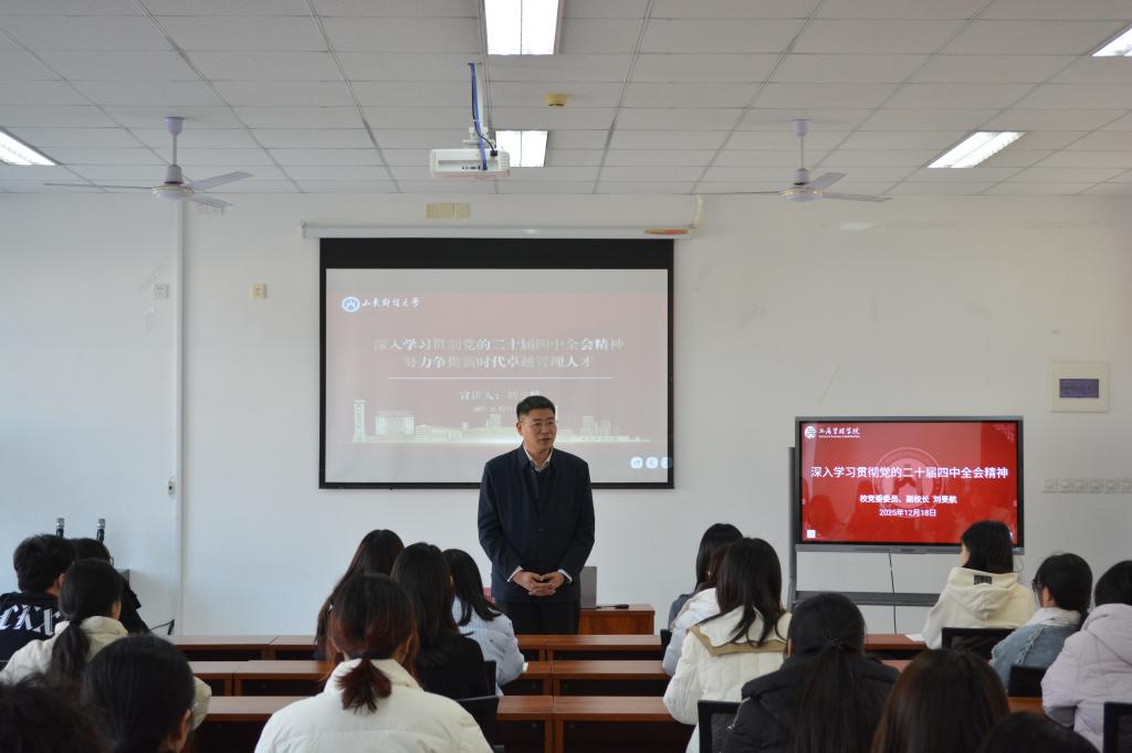 2024级工商管理(数智管理)国际创新实验班,以《深入学习贯彻党的二十届四中全会精神 努力争做新时代卓越管理人才》为主题,为同学们带来一堂深刻而生动的思政课。