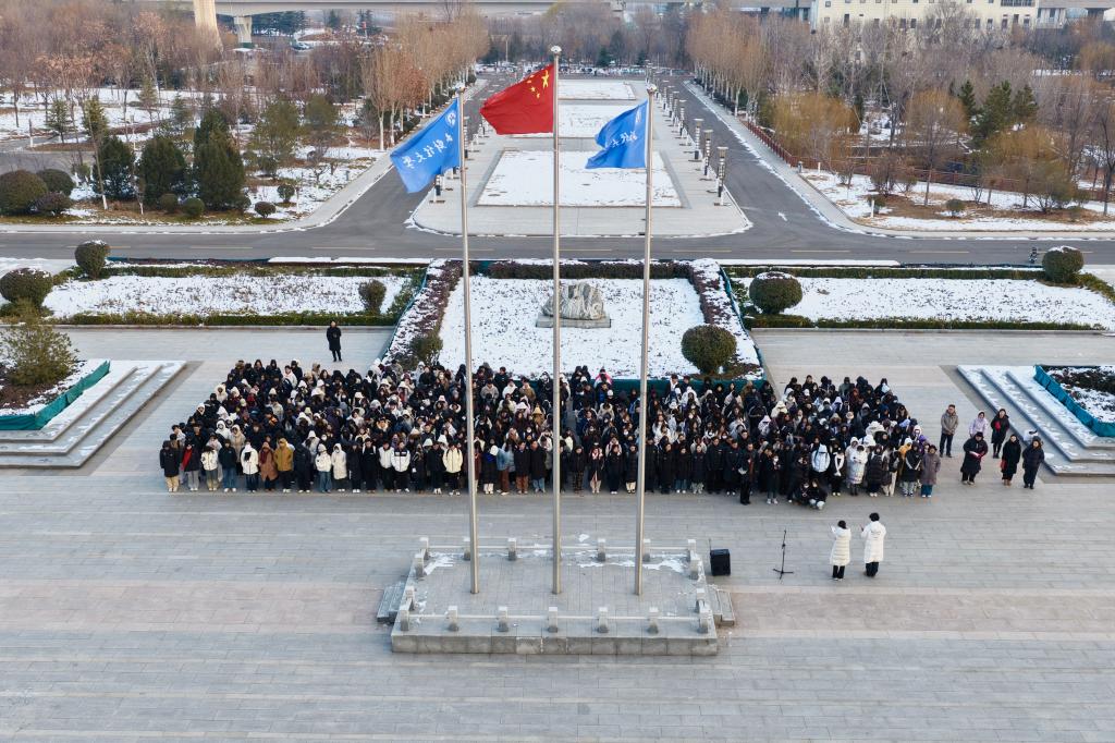 与龙山荣誉学院在章丘校区图书馆广场联合举行升旗仪式。辅导员陈盈君、任康、尤泽民、范雅欣及500余名学生代表共同参加。